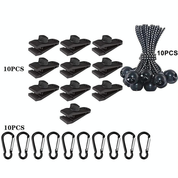 Windproof Canopy Fixed Tent Clip Rope Buckle Set 10 Clips+10 White Ropes+10 Black Buckles