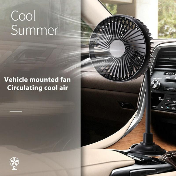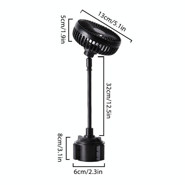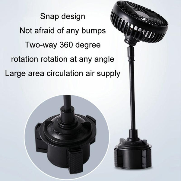 9. Specially designed for the front seats, with an adjustable base to securely mount the fan on the console cup holder, suitable for different vehicles, such as cars, trucks, SUVs, RVs