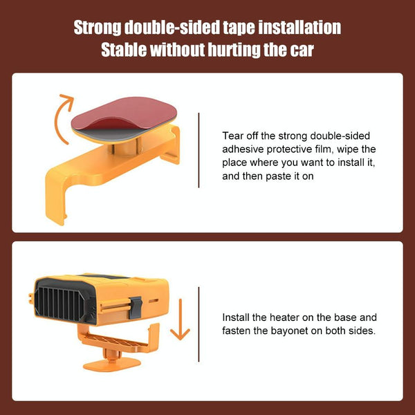 5. Strong double-sided adhesive installation, stable and not hurt the car, the base and the host can be removed, easy to take off the heater handheld blowing