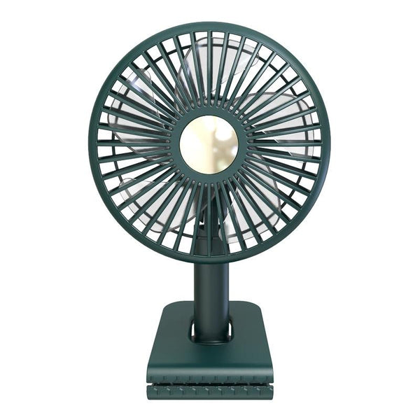 Car Clip-On Rechargeable Electric Oscillating Head Fan With Light(Dark Green)