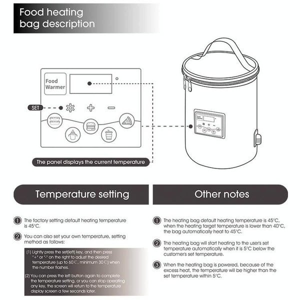 Car Outdoor Bottle Wipes Food Heating Warm Bag Temperature Adjustable Bottle Warmer (Black)