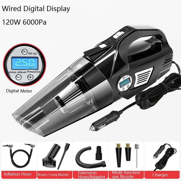 Car Vacuum Cleaner Air Pump Four-In-One Car Air Pump Digital Display 120W, Specification:Wired, Style:Digital Meter