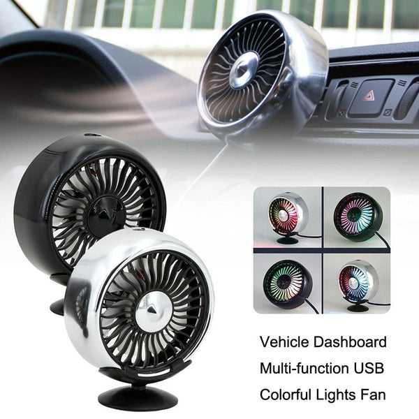 F102 Vehicle Dashboard Multi-function USB Colorful Lights Fan(Silver)