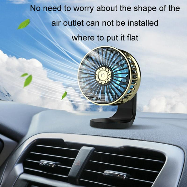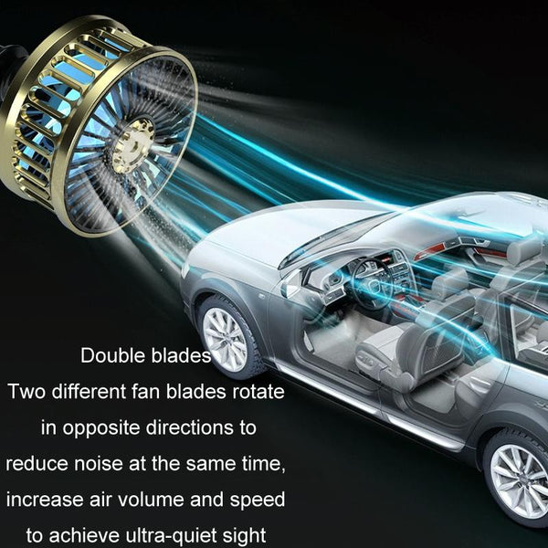 F210 Dual-Engine Car Air Outlet Base Dual-Purpose USB Fan(Gold)