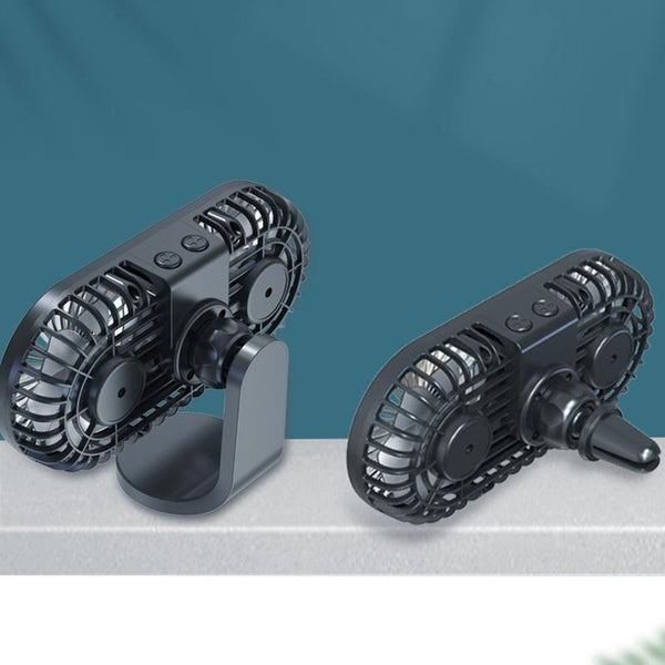 F211 Car Double Head With Led Electric Fan Car Air Outlet Instrument Panel USB Mini Fan(Pink)