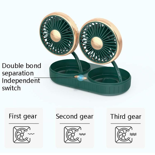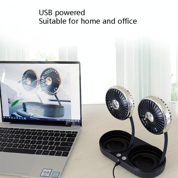 F303 Car USB Fan Car Shake Head Fan(Double Head Silver)