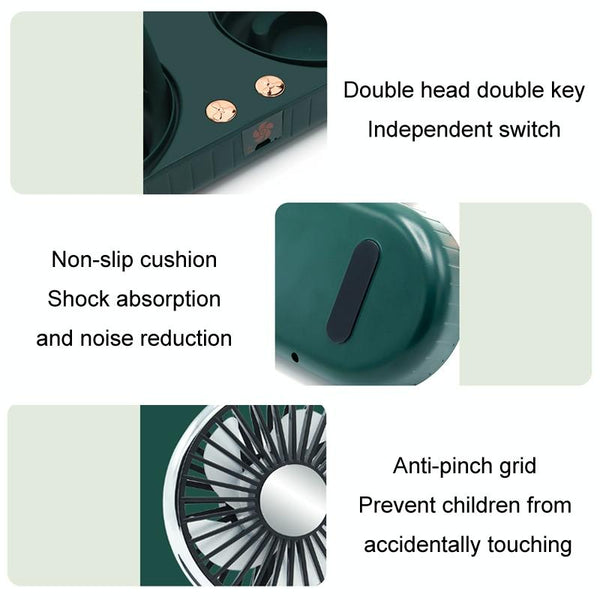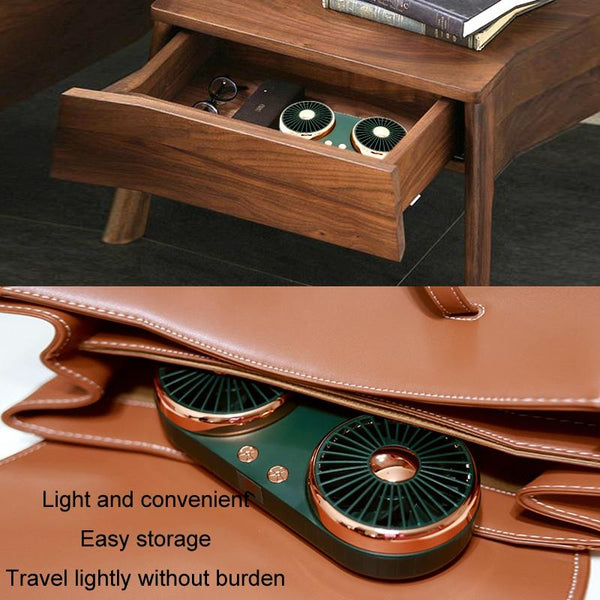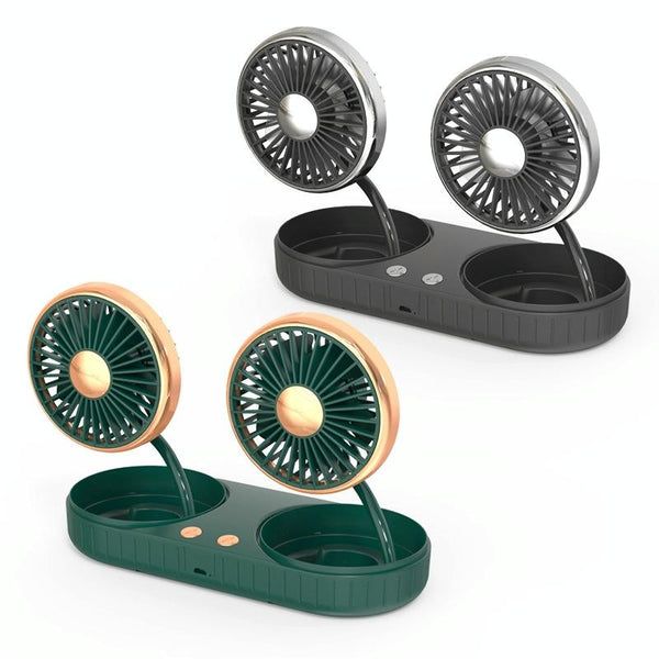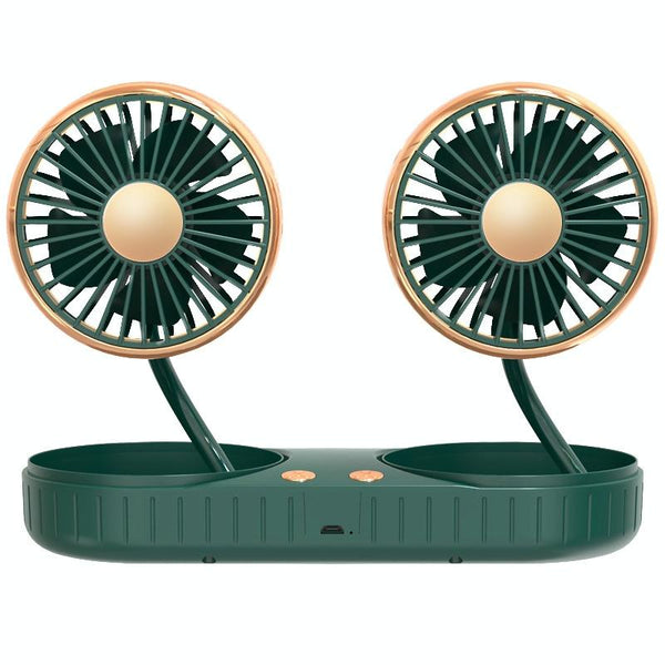 F304 Double-head Hose Built-in Lithium Battery USB Car Fan, Color: Green Gold