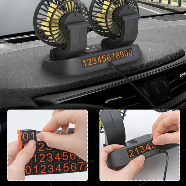 F410 USB 5V Car Dual-head Folding Electric Cooling Fan with Temporary Temporary Parking Card