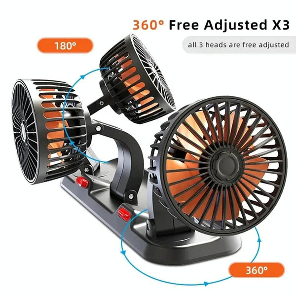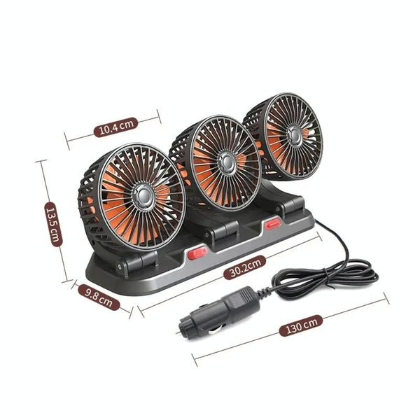 F4310 360-Degree Rotating Adjustable Car Three-Head Fan, Style:12V Cigarette Lighter