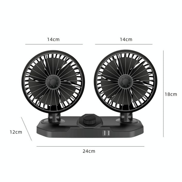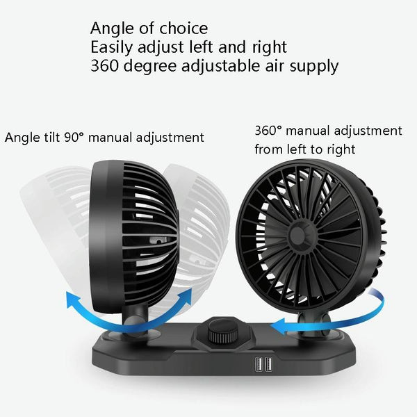 F558 With USB Mobile Phone Charging Car Fan 12/24V Car Truck Double Shaking Head Fan(Double Head 12V)