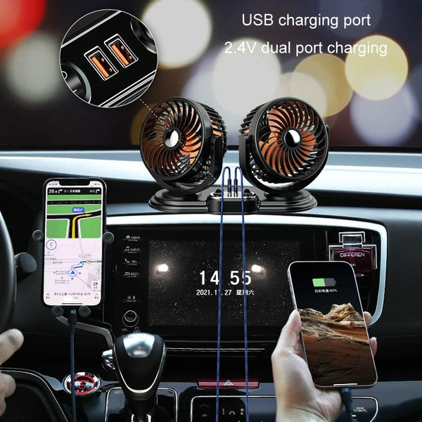 F621U Car Rotatable Turntable Silent Car Double Head Fan, Model: High Allocation 12V Cigarette Lighter