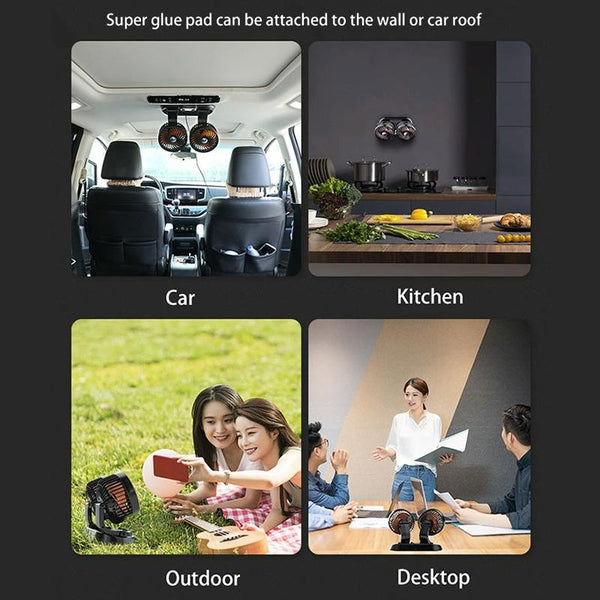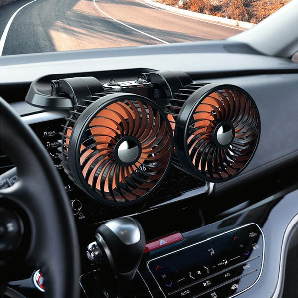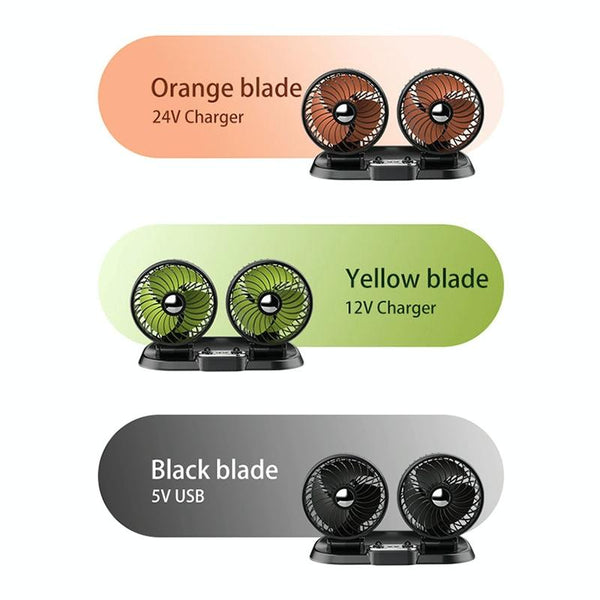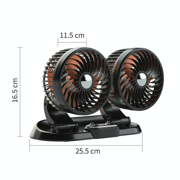 F622U Car Creative Folding Rotatable Double Head Electric Cooling Fan with Dual USB Charging Port, Style:24V Cigarette Lighter