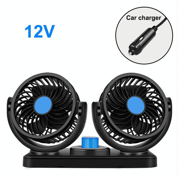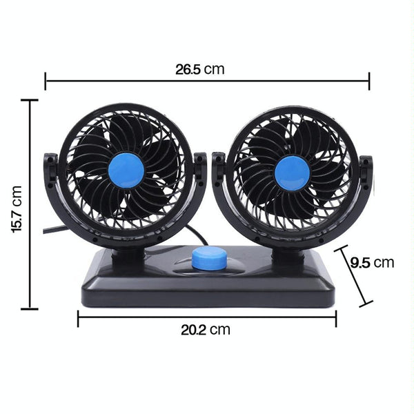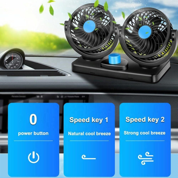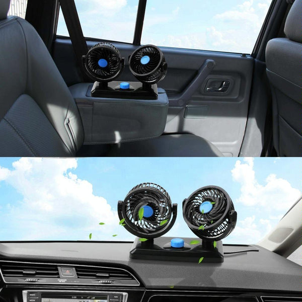 7. The double headed oscillating fan with 2 adjustable speeds and 360 degrees rotation allows the air to be circulated throughout your whole car so no one will be left out