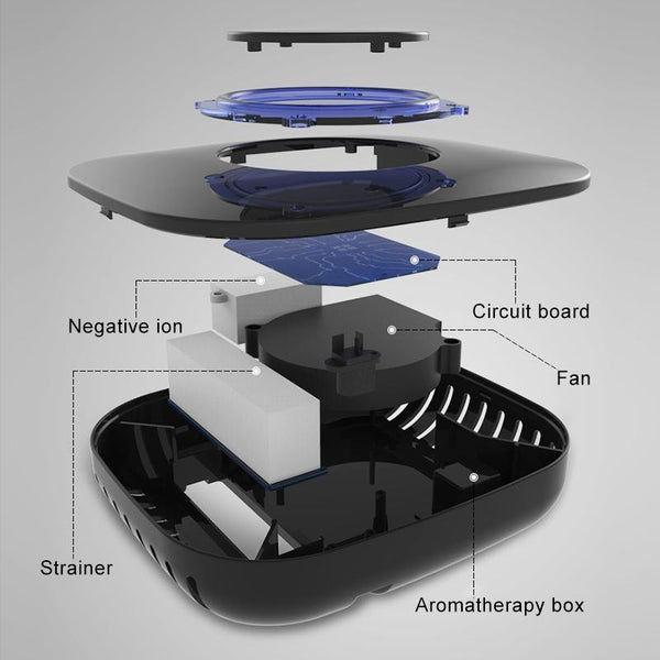 1. The air purifier has multi-layer filtration, which quickly kills all kinds of respiratory tract infection viruses, removes all kinds of odor, effectively filters PM2.5 particles, adsorbs above 99% of the formaldehyde, benzene and other harmful gases, and creates a comprehensive and healthy vehicle environment.