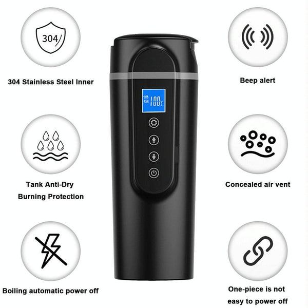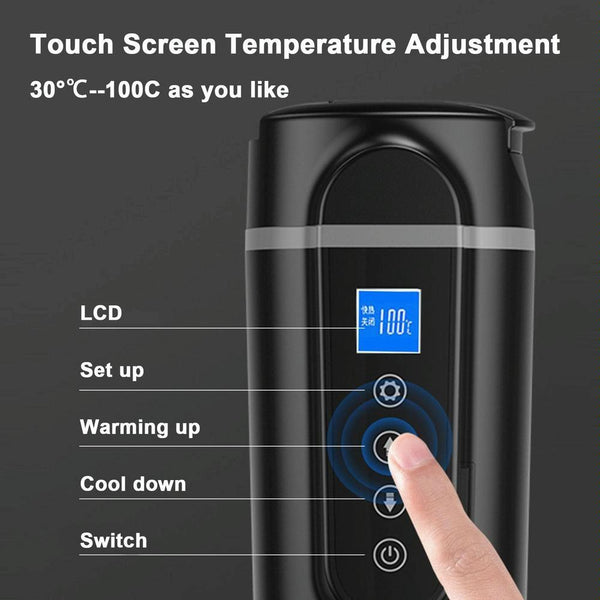 SUITUHQ-3900 24V/12V Car/Truck Heated Coffee Mug Smart Mug,Spec: Small Screen White