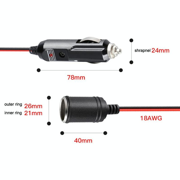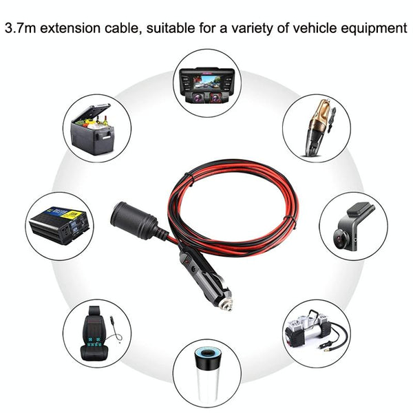 12-24V Car Cigarette Lighter Plug Extension Line, Cable Length 3.7m