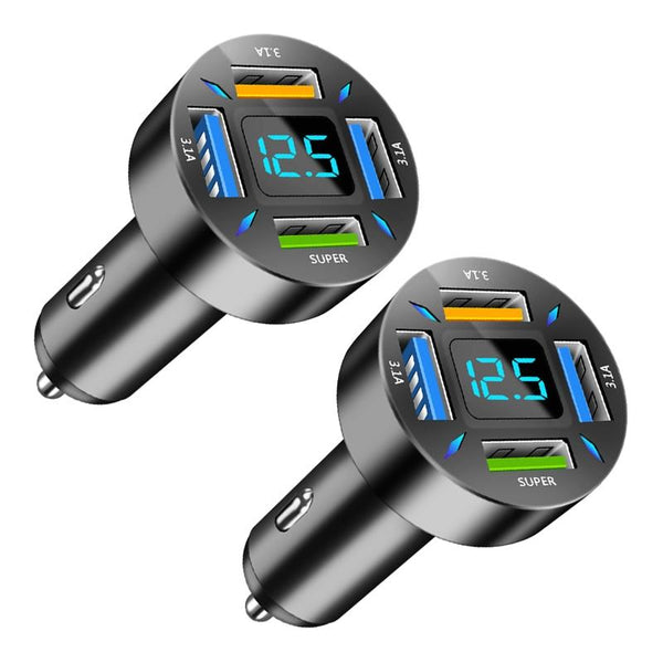 2pcs 4 in 1 USB 66W Digital Display Car Super Fast Charger