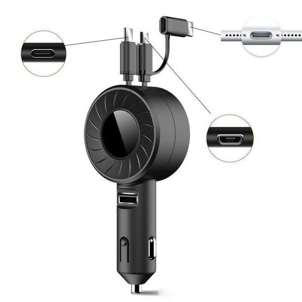 3 In 1 USB Dual Cable Single Pull Retractable Car Charger(Black)
