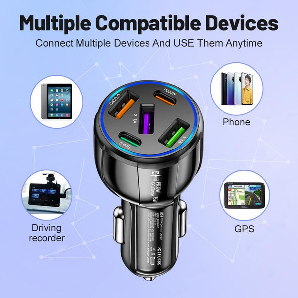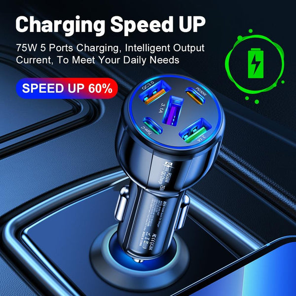 3USB+2PD 75W Dual Line Car Mobile Phone Fast Charging Charger(White)