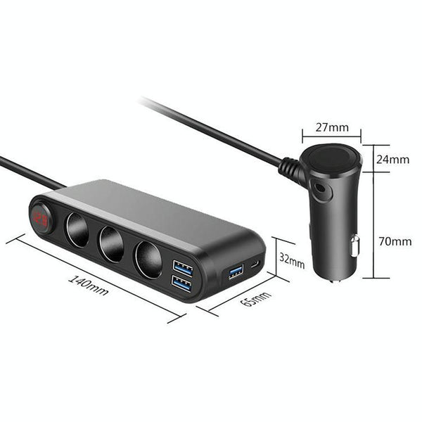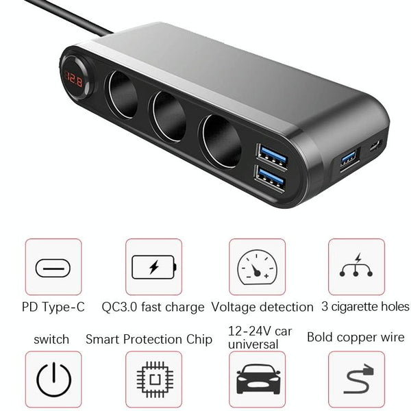 3USB QC3.0 Fast Charge + PD 120W Car Conversion Charger