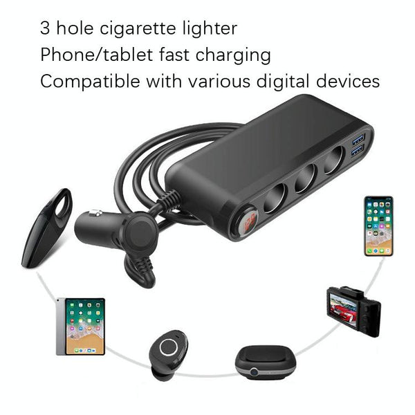 2. 3-hole cigarette lighter, fast charging for mobile phone/tablet, compatible with various digital devices