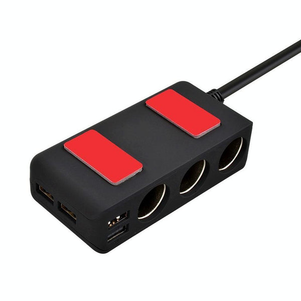 6.8A 80W Plastic Shell 3 Sockets in 1 Car Cigarette Lighter Car Charger Car Socket with 4 USB Ports and a Control Switch(Black)
