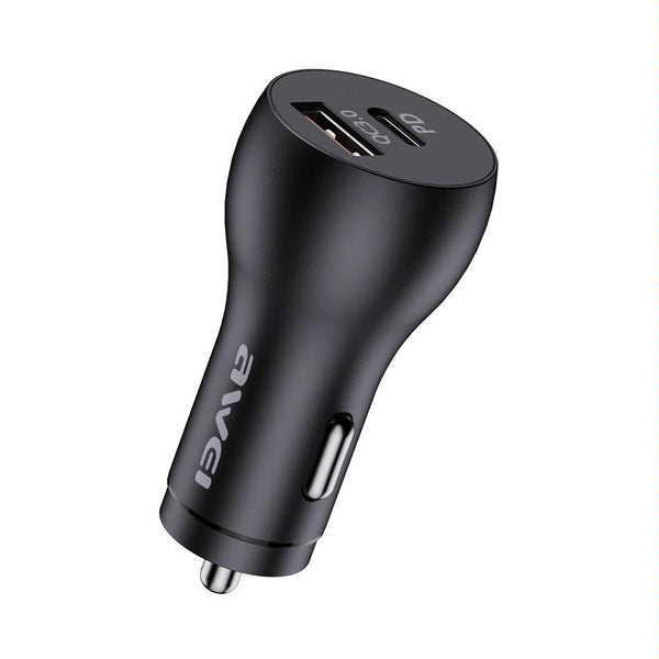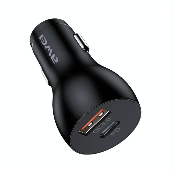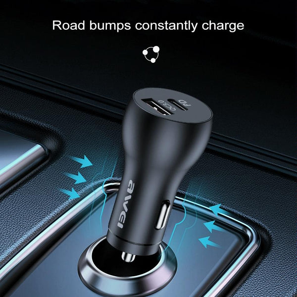 awei C-822 18W PD 8 Pin + 18W QC 3.0 USB Interface Car Charger(Black)