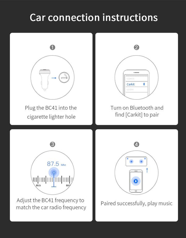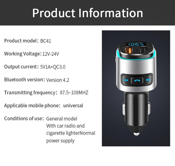 BC41 Multi-Functional MP3 Player, Bluetooth Receiver, USB Charger, Automobile Cigarette Lighter(Silver Grey)