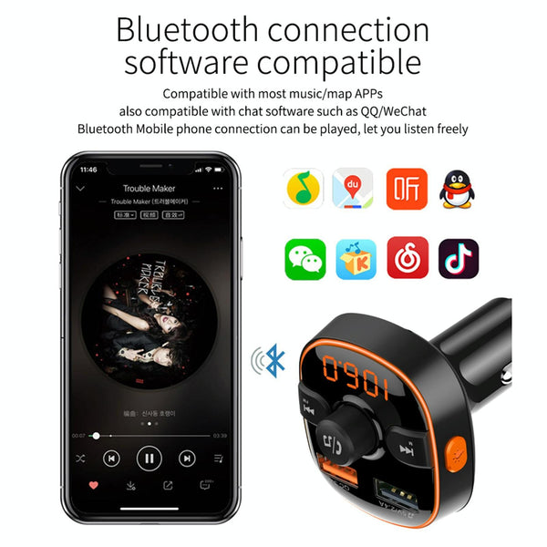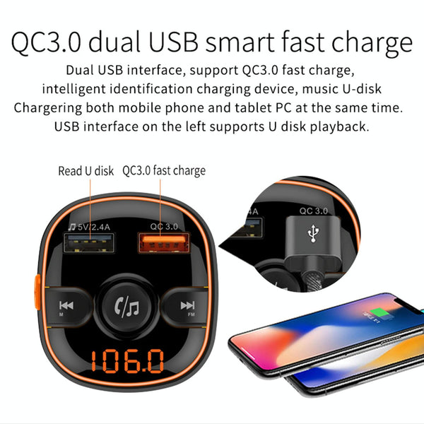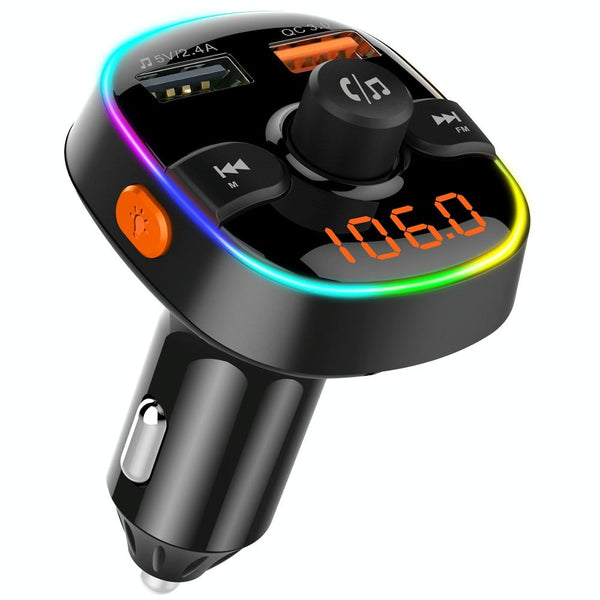 BC52 QC3.0 Fast Charging Car Colorful Atmosphere Light Bluetooth MP3 Player FM Transmitter