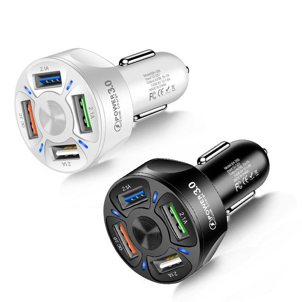 BK-358 3A QC3.0 4USB Car Charger One For Four Mobile Phone Car Charger(Black)