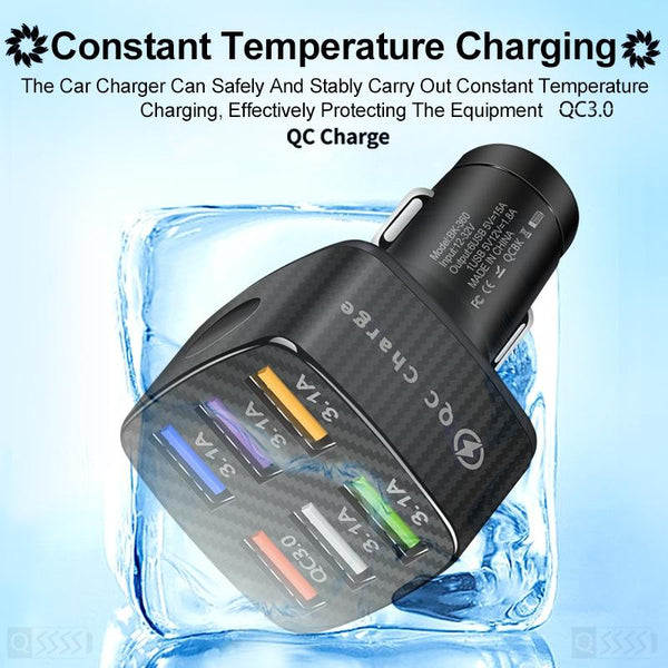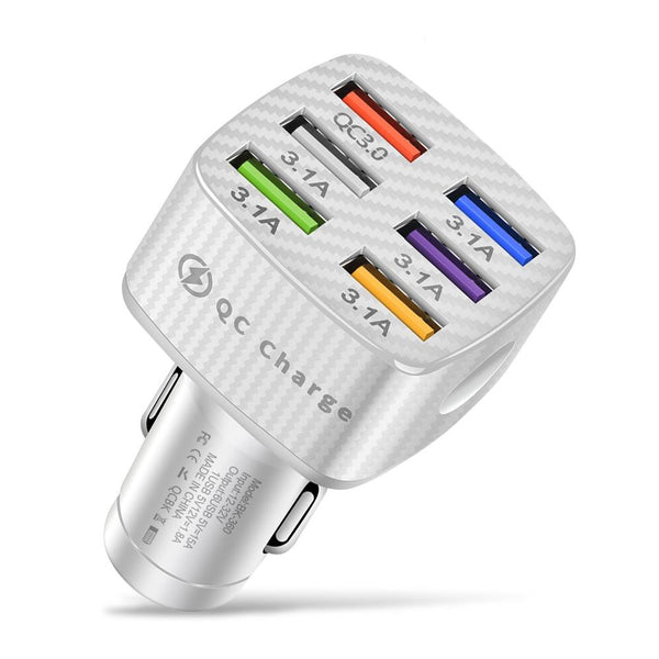 BK-360 6 in 1 QC3.0+3.1A USB luminescent Car Charger (White)