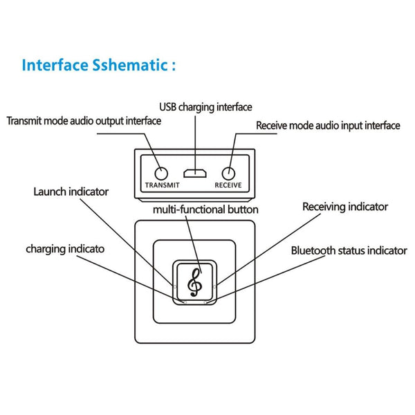 4. When using in the Bluetooth transmitter mode, it can wirelessly transmit the music on your mobile phone, walkman, TV, computer equipment to your Bluetooth receiver, stereo Bluetooth headset or Bluetooth speaker and other devices...