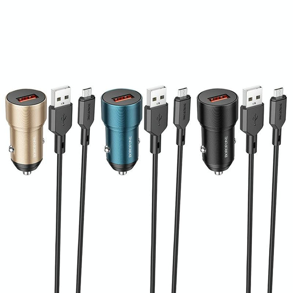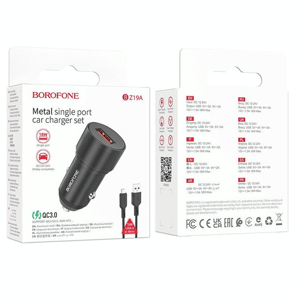 BOROFONE BZ19A Wisdom QC3.0 USB Port Fast Charging Car Charger with USB to Micro USB Cable(Black)