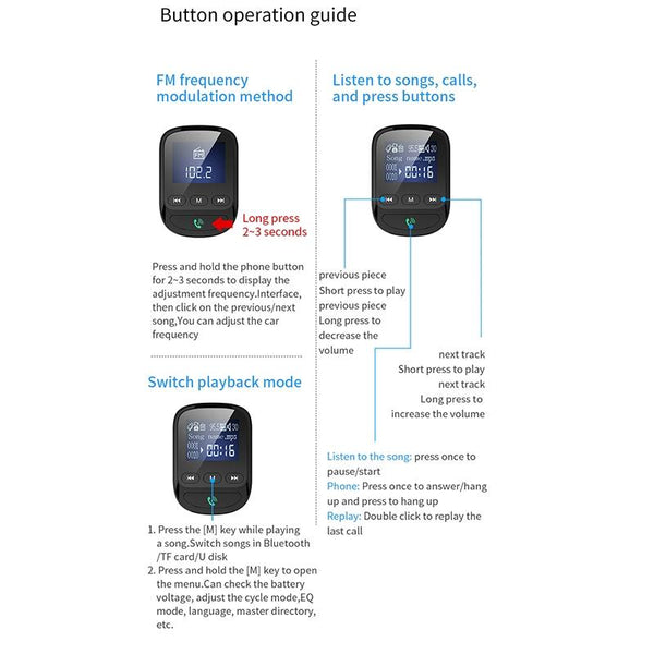 BT06 1.4 inch Car MP3 Player FM Transmitter QC3.0 Quick Charge Support Bluetooth Handsfree / TF Card