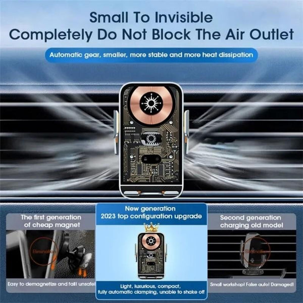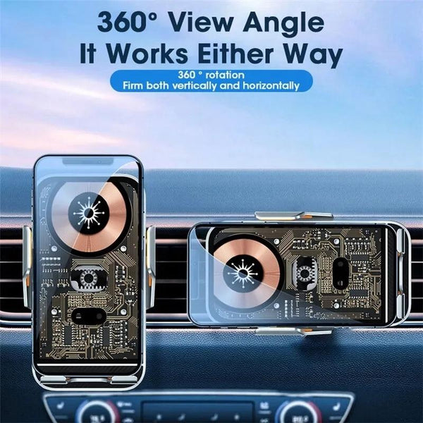 2.Qi Wireless Charger and Phone Holder: The 2-in-1 design combines the Qi wireless charger and the car phone holder in one device. The wireless car charger provides fast charging for your phone and keeps you free from cables and phone cases while driving.