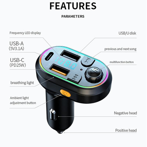 C29 Car Bluetooth 5.0 FM TransmitterCar MP3 Player Fast Charge U Disk Lossless Music Player