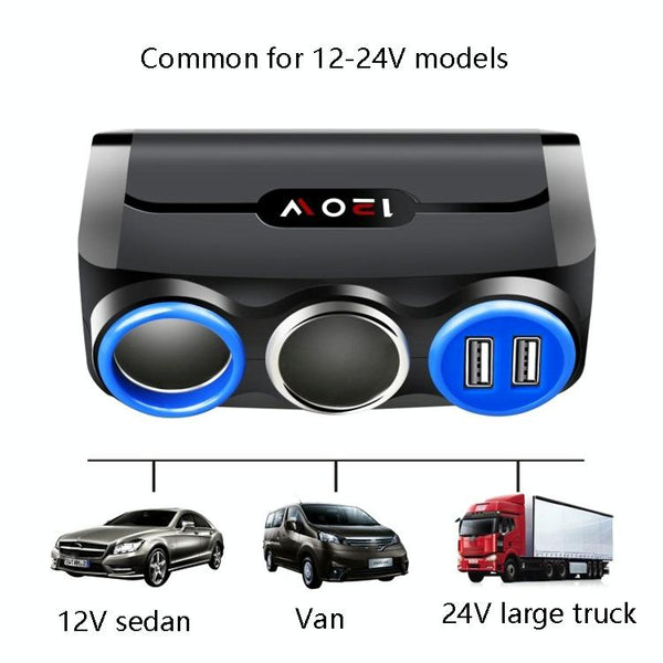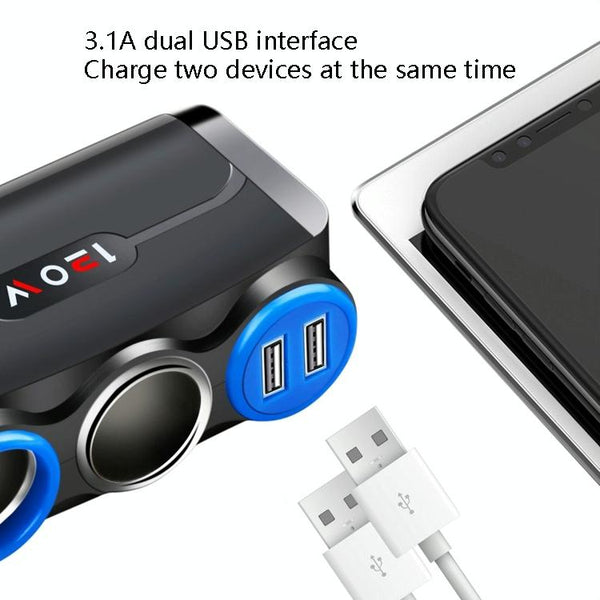 Car Cigarette Lighter Multi-Function Mobile Phone Charging USB Car Charge 12/24V Adapter Plug(Black Blue)
