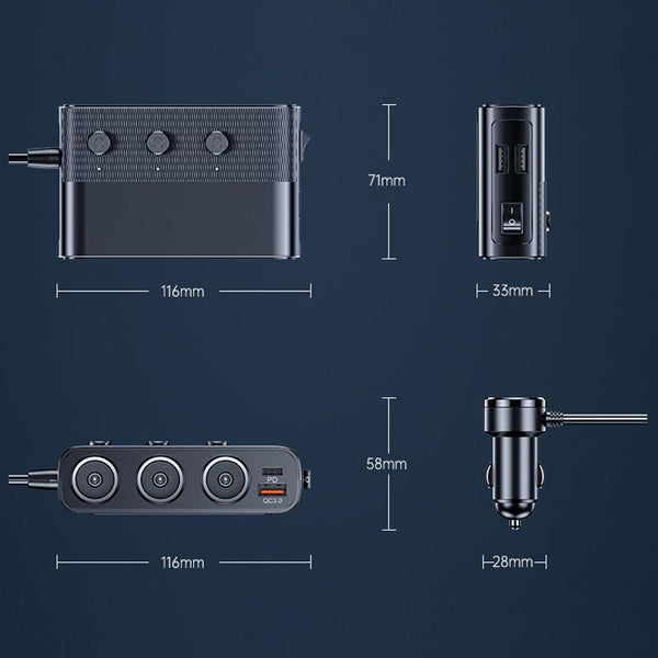 9. Enables you to quickly charge 3 devices at the same time, 3 12V/24V cigarette lighter sockets