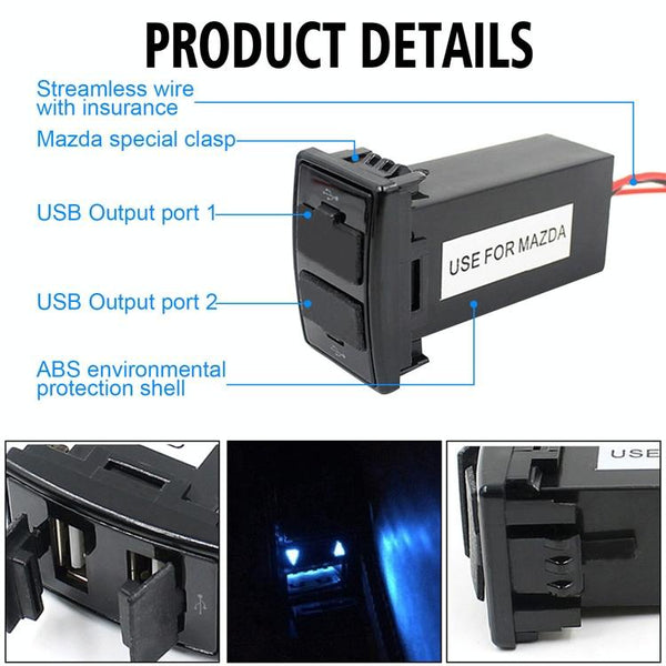 1. Dedicated USB charger for Mazda, fits for the Mazda cars with reserved sockets.