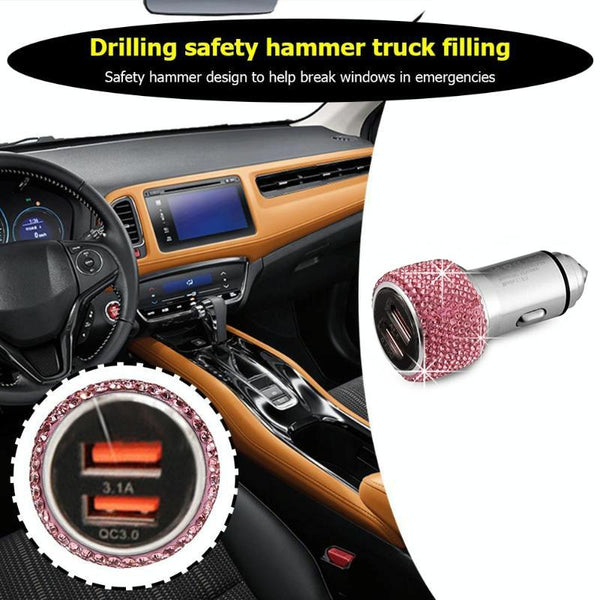 Car Diamond Aluminium Alloy QC3.0 Dual USB Quick Charger(Black)