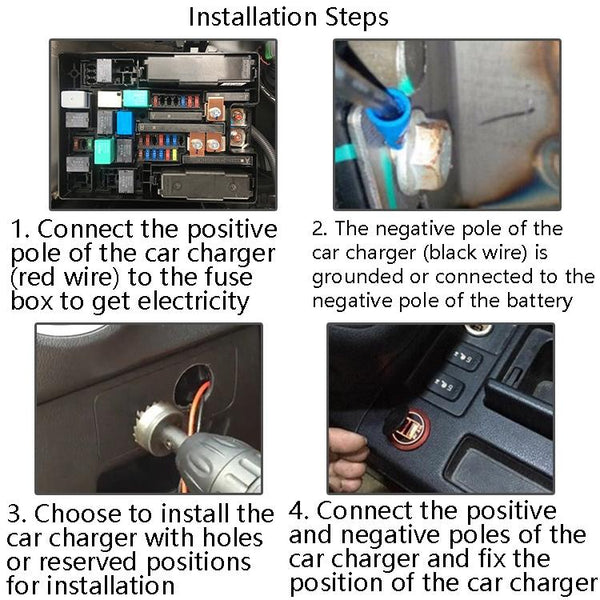 1. Connect the positive pole of the car charger (red wire) to the fuse box to get electricity