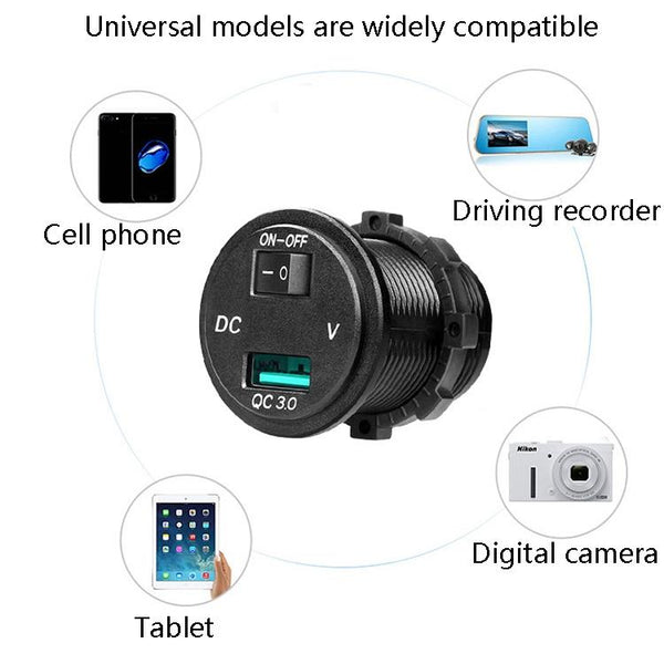 Car Motorcycle Modified USB Charger With Switch 12-24V Fast Charge(Green Light)