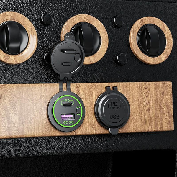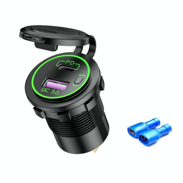 Car Motorcycle Ship Modified USB Charger Waterproof PD + QC3.0 Fast Charge, Model: Green Light With Terminal