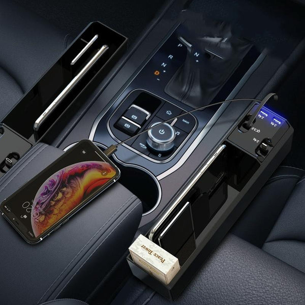 Car Seat Storage Box With Cable Car USB Charger, Style:2-wire