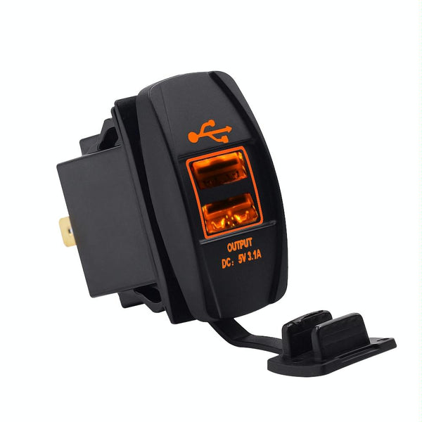 Car Waterproof Dual USB Charger DC12-24V 3.1A, with LED Indicator Light(Orange Light)