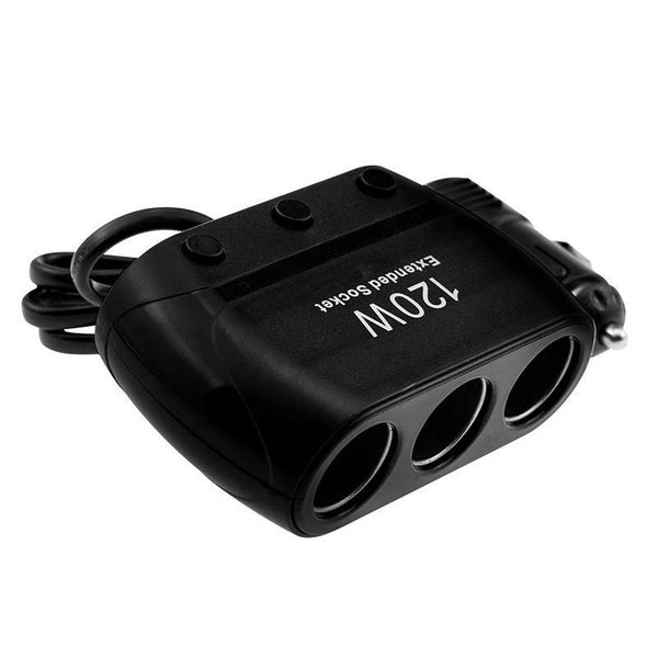 Cigarette Lighter Adapter Splitter 3 Sockets Cigarette Lighter Splitter 12V/24V Power Car Charger(Black)