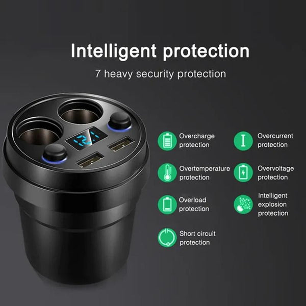 Cup Car Charger Dual USB Corded Cigarette Lighter Mobile Phone Charger(Black)