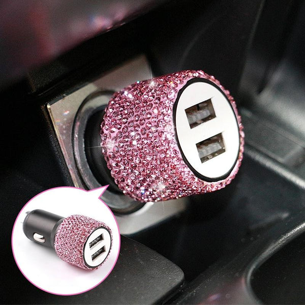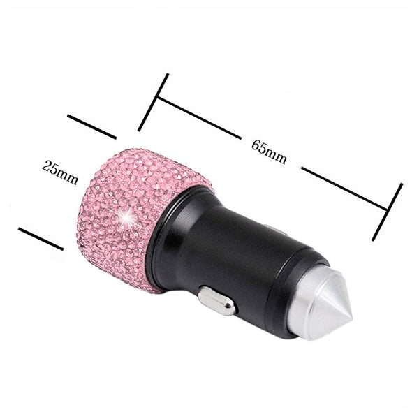Diamond Car Dual USB Charge Mobile Phone Safety Hammer Charger(pink)