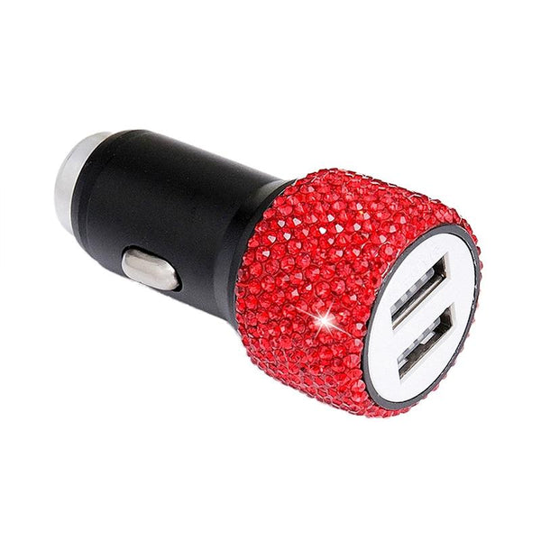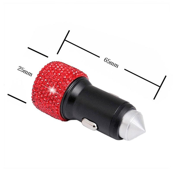 Diamond Car Dual USB Charge Mobile Phone Safety Hammer Charger(red red)