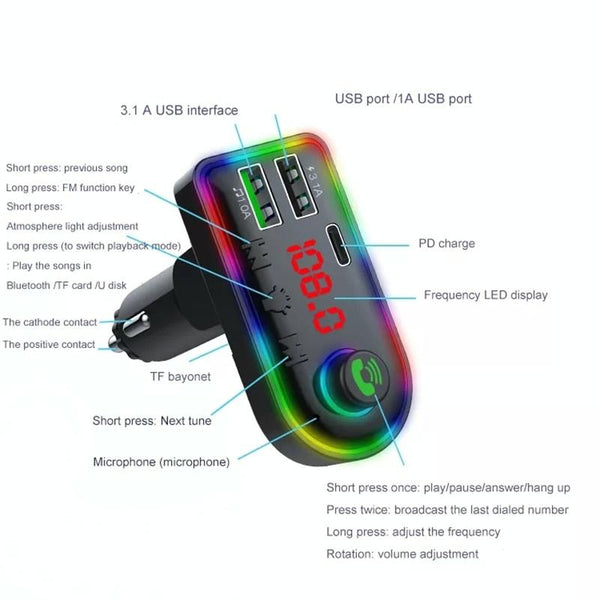 1. Bluetooth hands-free call USB with charging function